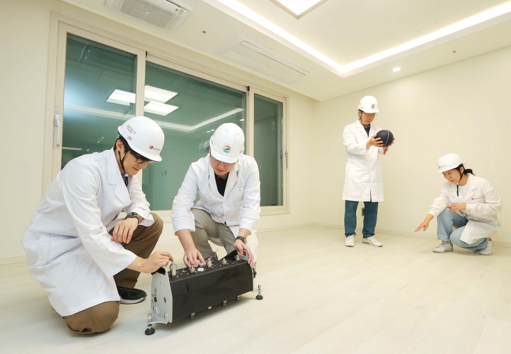 서울 서초구에 위치한 GS건설 R&D센터에서 LX하우시스와 GS건설 연구원들이 바닥충격음 테스트를 진행하고 있는 모습.